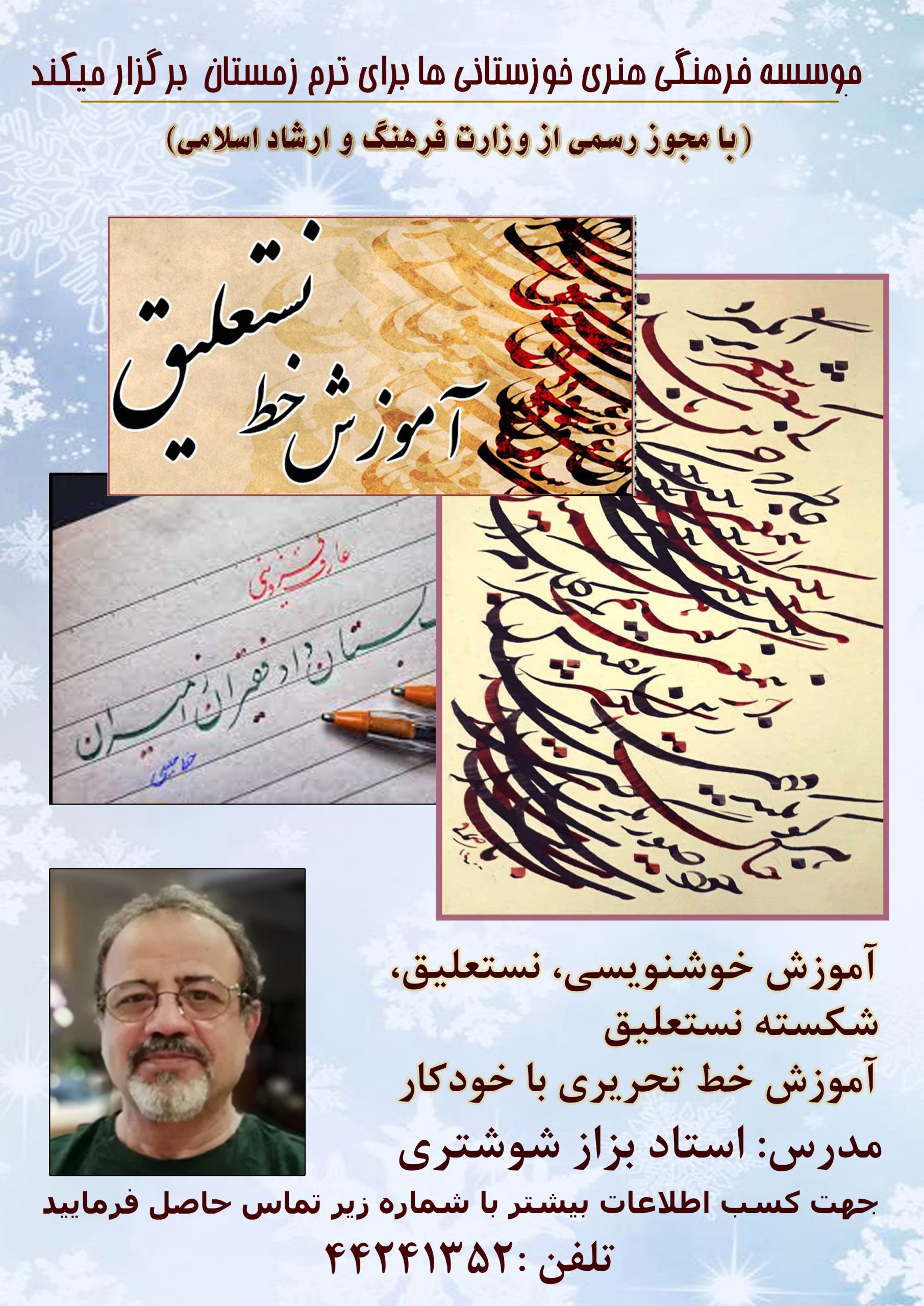 اطلاعیه دوره زمستانه آموزش خوشنویسی خط تحریری با خودکار، نقاشی خط (کالیگرافی) و نستعلیق