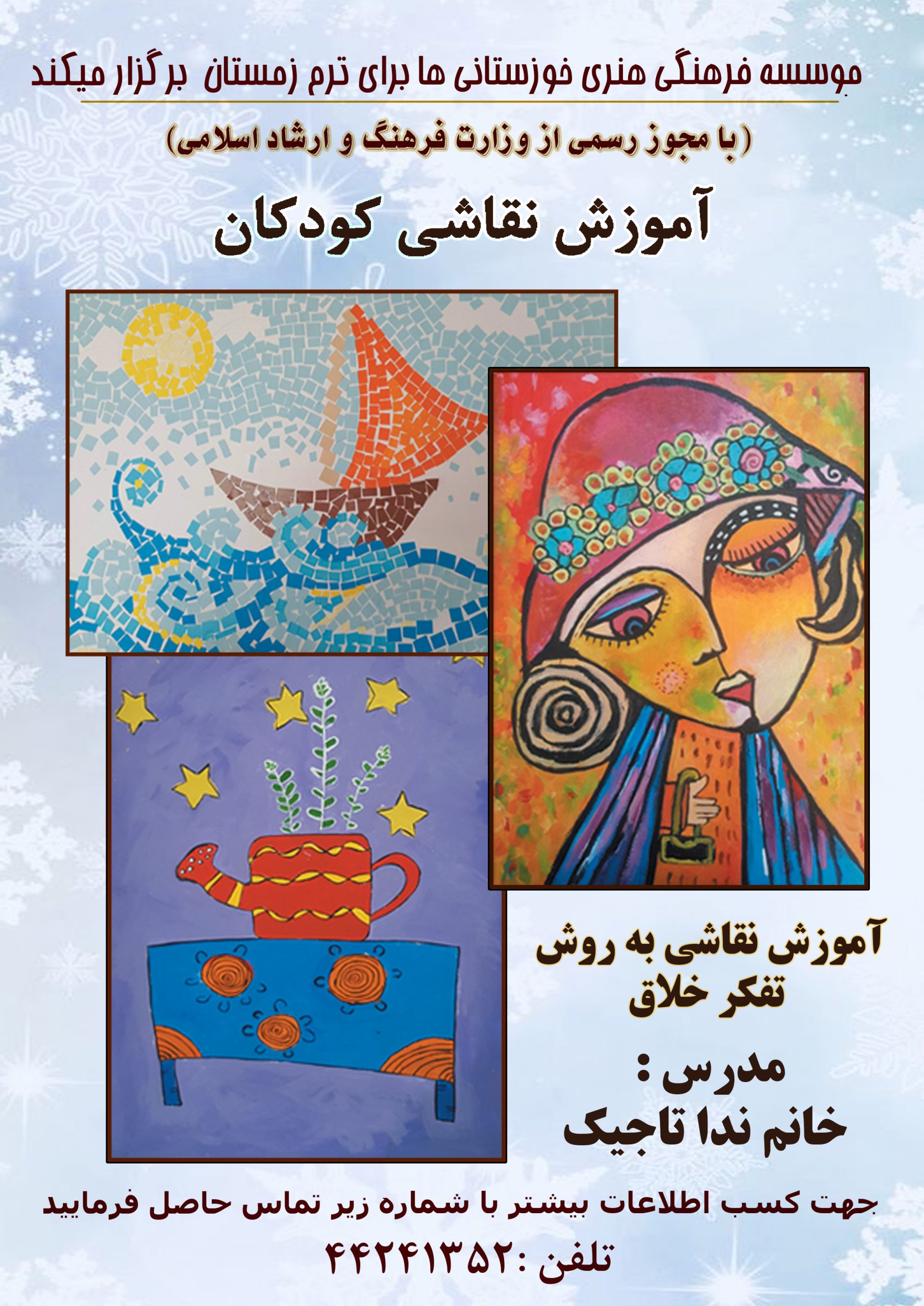 اطلاعیه دوره زمستانه آموزش نقاشی کودکان به روش تفکر خلاق با مجوز رسمی از وزارت فرهنگ و ارشاد اسلامی: