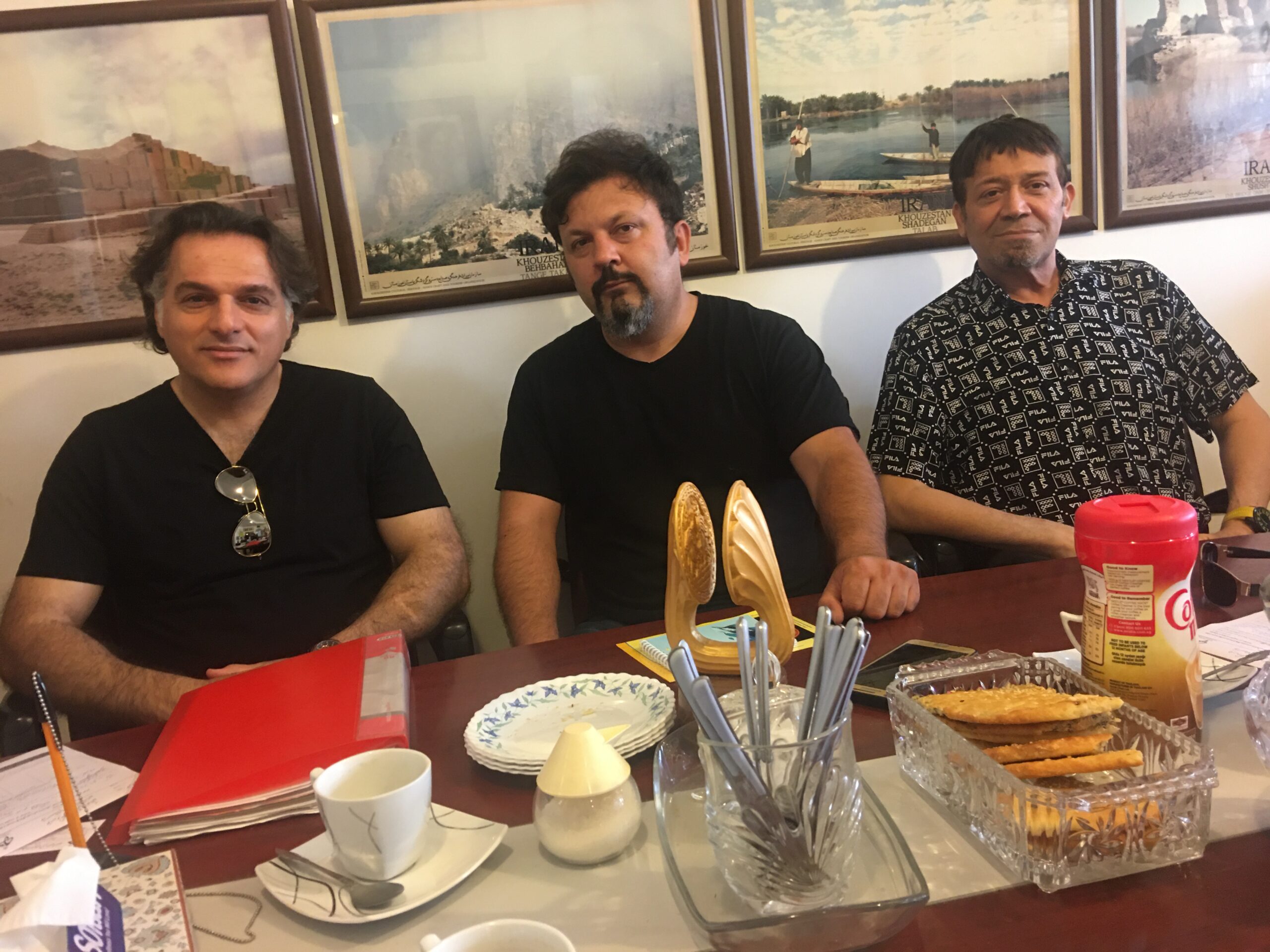 آقایان بهمن زمانی مهر ( آبادانی ، استاد زبان انگلیسی، عضو موسسه ) ، محمد علی زرشقایی ( آبادانی ، حسابدار ، عضو جدید موسسه ) ، علی صابری ( استاد موسیقی با تخصص گیتار ) مهمانان ما در دفتر موسسه بودند و در زمینه همکاری مشترک راه اندازی گروه موسیقی خوزستان کلوب بحث و گفتگو گردید ۰۷/۰۴/۱۴۰۱