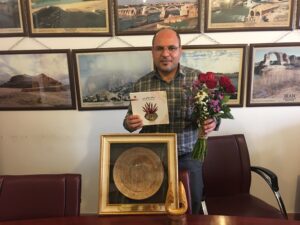 آقای مهندس امید هدایت نژاد (بهبهانی، لیسانس شیمی کاربردی، فوق لیسانس برنامه ریزی شهری، کارمند شرکت پتروشیمی مارون، فعال اجتماعی ) به نمایندگی از گروه تاریخ و فرهنگ بهبهان مهمان ما در دفتر موسسه بودند و وهله اول یک دسته گل زیبا ، یک قاب نفیس جام زندگی ارجان و یک تندیس حلقه زرین قدرت (متعلق به کیدین هوتران شاهزاده عیلامی مکشوفه در ارجان بهبهان در قرن ۸ پیش از میلادی) به موسسه اهدا نمودند و در مورد سوابق همکاری با شهرستان بهبهان به طور مفصل صحبت گردید و با آقایان صحرایی ریاست اداره میراث فرهنگی ، گردشگری و صنایع دستی بهبهان و آقای بلالی فعال تاریخی و فرهنگی بهبهان مکالمه تلفنی شد و در در موارد ذیل بحث ، گفتگو و جمع بندی گردید : ۰۳/۰۲/۱۴۰۱